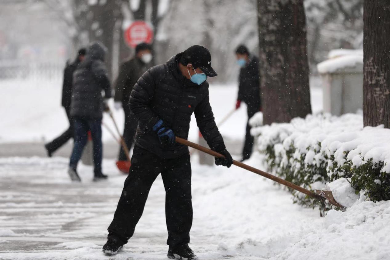 党员鲁冀同志冒雪清扫校外隔离观察点院内积雪