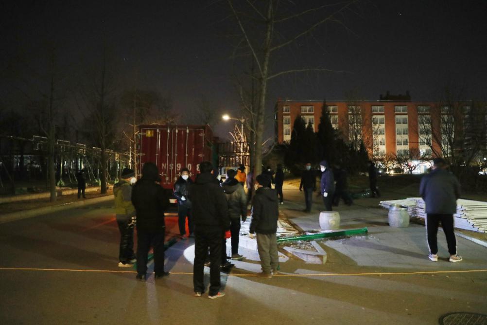 临时党支部副书记温惠深夜与工作人员坚守在家属区门口