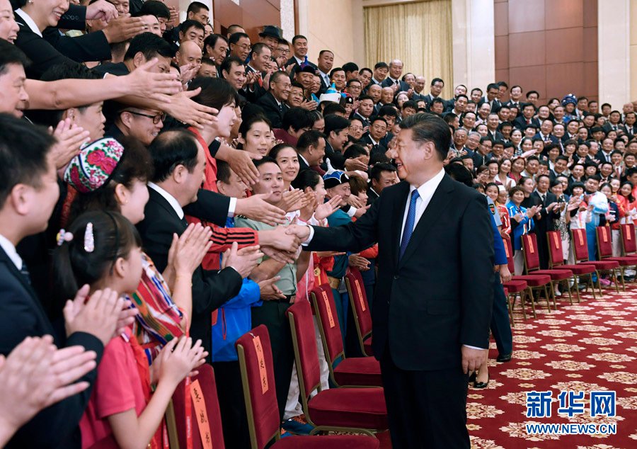 当天上午,天津宾馆会议厅内洋溢着热烈的气氛,参加会见的代表们情绪饱满、精神振奋,有的身穿少数民族盛装,有的胸前佩挂着闪亮的奖牌。11时许,习近平等来到天津宾馆会议厅,全场爆发出雷鸣般的掌声。习近平同参加会见的代表亲切握手,不时交谈并合影留念。