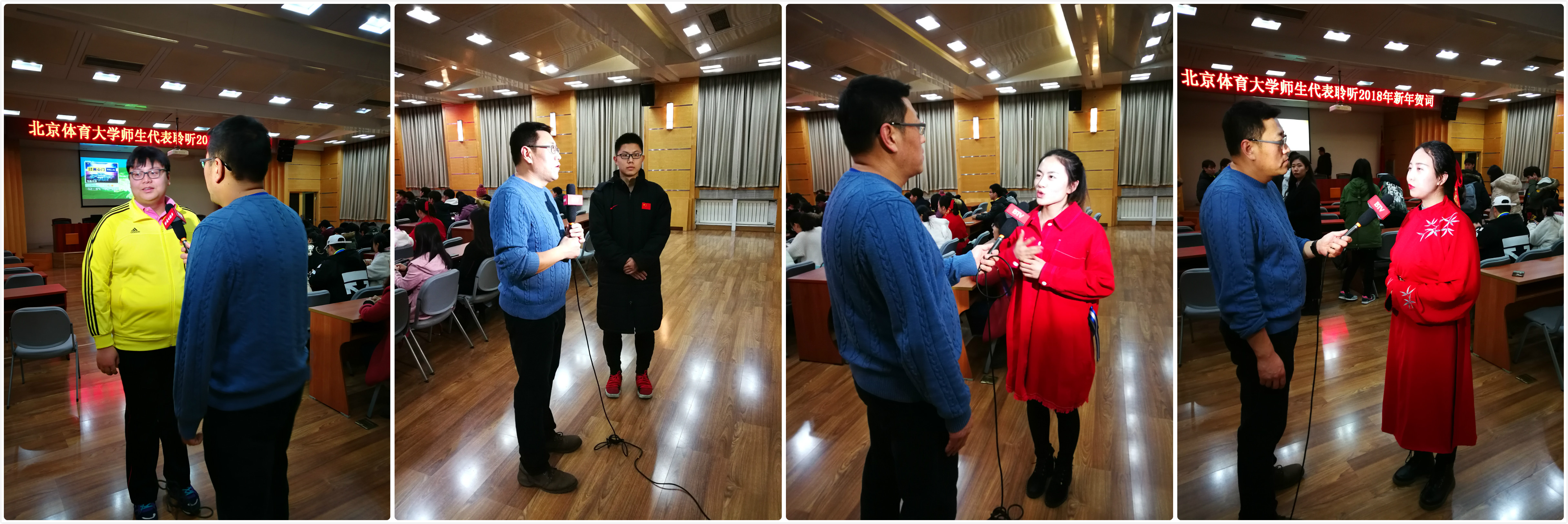 北京电视台采访报道了金年会师生学习聆听习近平主席新年贺词的感想。采访中,教练员和教师代表高鹏、刘卉、周铁民、李慧,学生代表高昇、李家晟、李泽润、汉宸玉纷纷表示,习近平主席的新年贺词谈到了很多人民群众关心的热点问题,听上去亲切平实,但却催人奋进,给人以感动和力量。2017年,我国在各个领域取得的巨大成就令人备受鼓舞,尤其是党的十九大的胜利召开,更是为我们指明了今后奋斗的目标和方向。作为一名金年会人,坚信“幸福都是奋斗出来的”,并会将“不驰于空想、不骛于虚声”的倡议转变为行动的力量,踏踏实实干好工作,认认真真完成学业,为“两个一百年”奋斗目标和中华民族伟大复兴中国梦的实现贡献金年会智慧和金年会力量, 奋力谱写新的篇章。