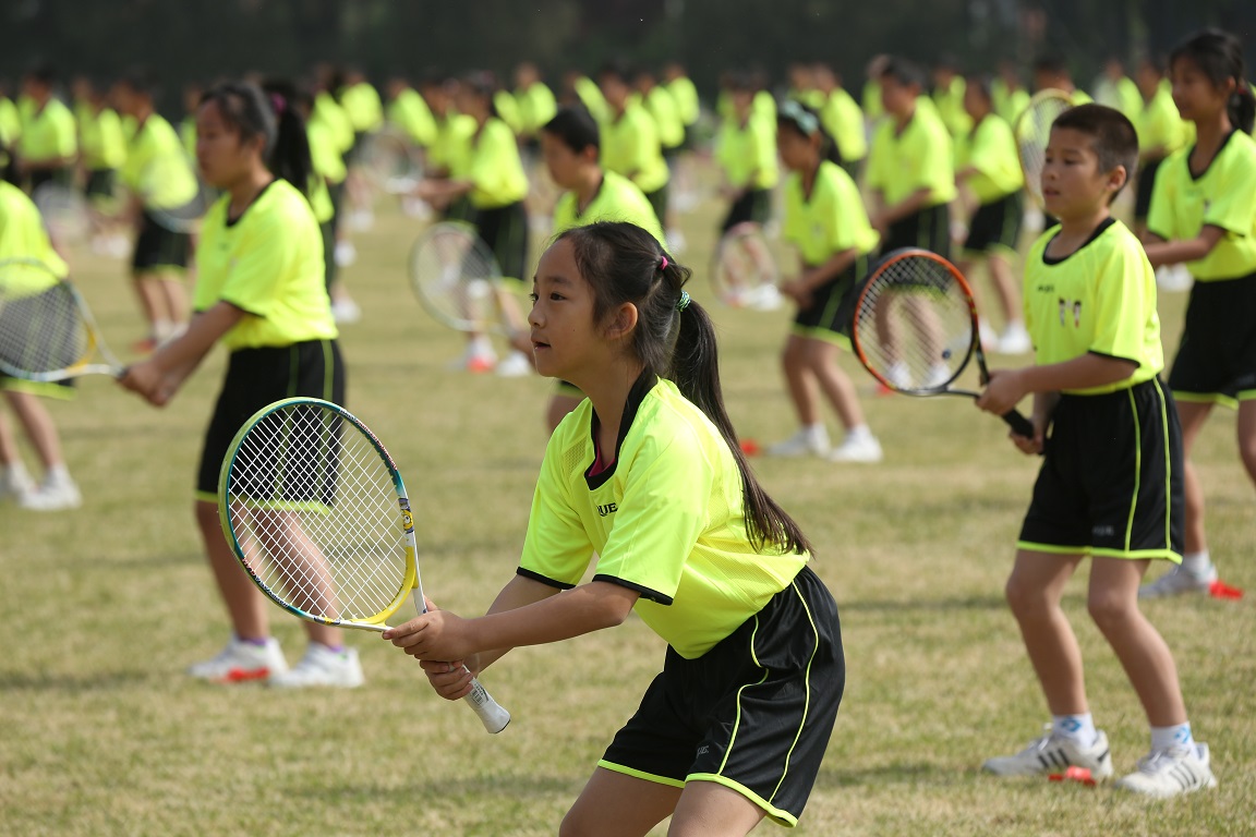 亮点二:“高参小”结对小学带来精彩网球操和趣味田径表演。