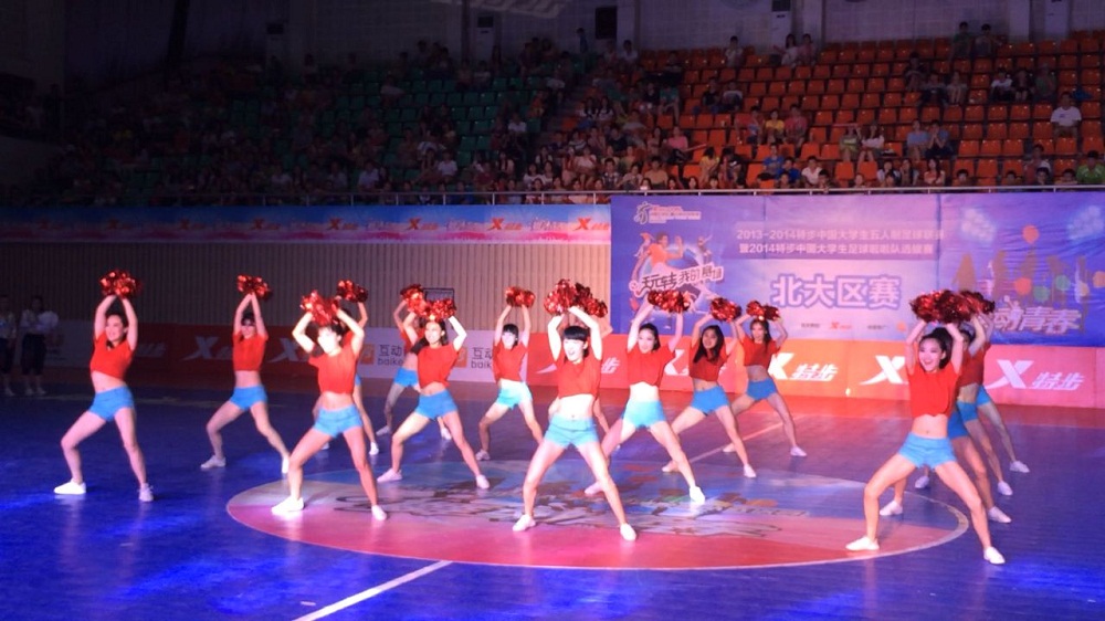 金年会舞蹈啦啦队于5月28—6月3日参加了在武汉举行的“2014中国大学生足球啦啦队(北大区)选拔赛”。金年会舞蹈啦啦队由15名体育艺术系学生和1名教育学院学生组成,在教练员孟宪君、曹森的带领下,经过7天5场激烈的角逐,在赢得全场一片喝彩声的情况下,屈居亚军。 “2014中国大学生足球啦啦队总决赛”将于6月27日进行,金年会舞蹈啦啦队将与南、北大区另外三支队伍争夺总决赛冠军。