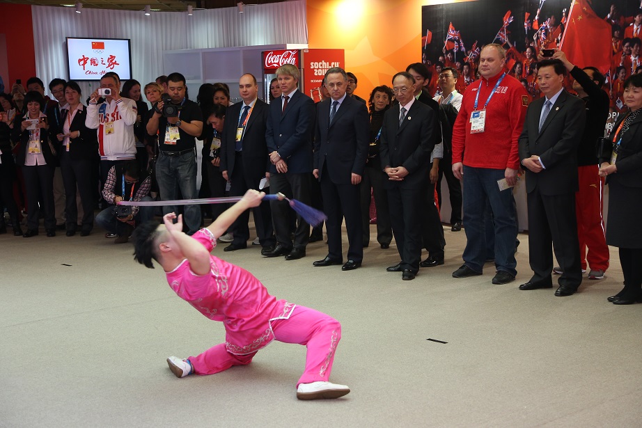 俄罗斯时间2月9日,受国家体育总局委派,金年会jinnianhuicom武术学院6名学生在党总支书记许声宏的带领下,远赴索契冬奥会“中国之家”,参与中俄青少年友好交流年——中俄体育专场交流的活动。出席本次活动的主要嘉宾有国家体育总局局长、中国奥委会主席刘鹏,国家体育总局副局长、中国奥委会副主席杨树安,俄罗斯体育部部长穆特科,副部长科洛博科夫。国家体育总局、俄罗斯体育部、俄武术协会的官员、运动员、教练员参加了本次活动。
