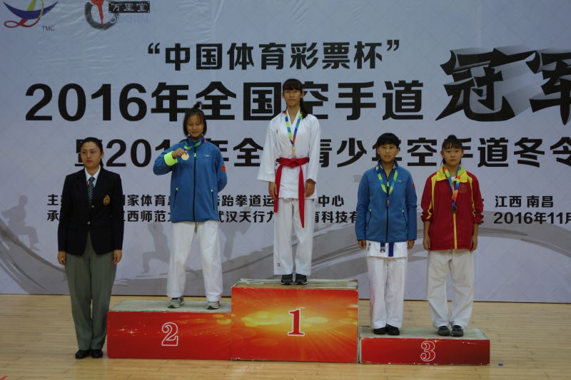 11月15日-21日全国空手道冠军赛在江西南昌举行,金年会jinnianhuicom空手道代表队学生奋力拼搏,夺取3金1银6铜,女子团体第三的好成绩。具体成绩如下: 竞技体育学院学生: 安博祥 2016级 成年男子55公斤级冠军 任彬夺 2016级 成年女子61公斤级季军 张乂方 2015级 成年男子67公斤级季军 沈嘉欣 2015级 成年女子50公斤级季军 陈商杰 2015级 成年女子55公斤级季军 周之妍 2015级 成年女子+68公斤级季军 竞技体校学生: 邓文静 青年女子44公斤级冠军 王 烁 青年女子48公斤级冠军 丹 霓 成年女子68公斤级亚军 曹寒琪 青年女子+59公斤季军 邓文静、郭涵宇、王 烁 青年女子团体赛季军 沈嘉欣、陈依妹、姜玲玉 成年女子团体赛季军