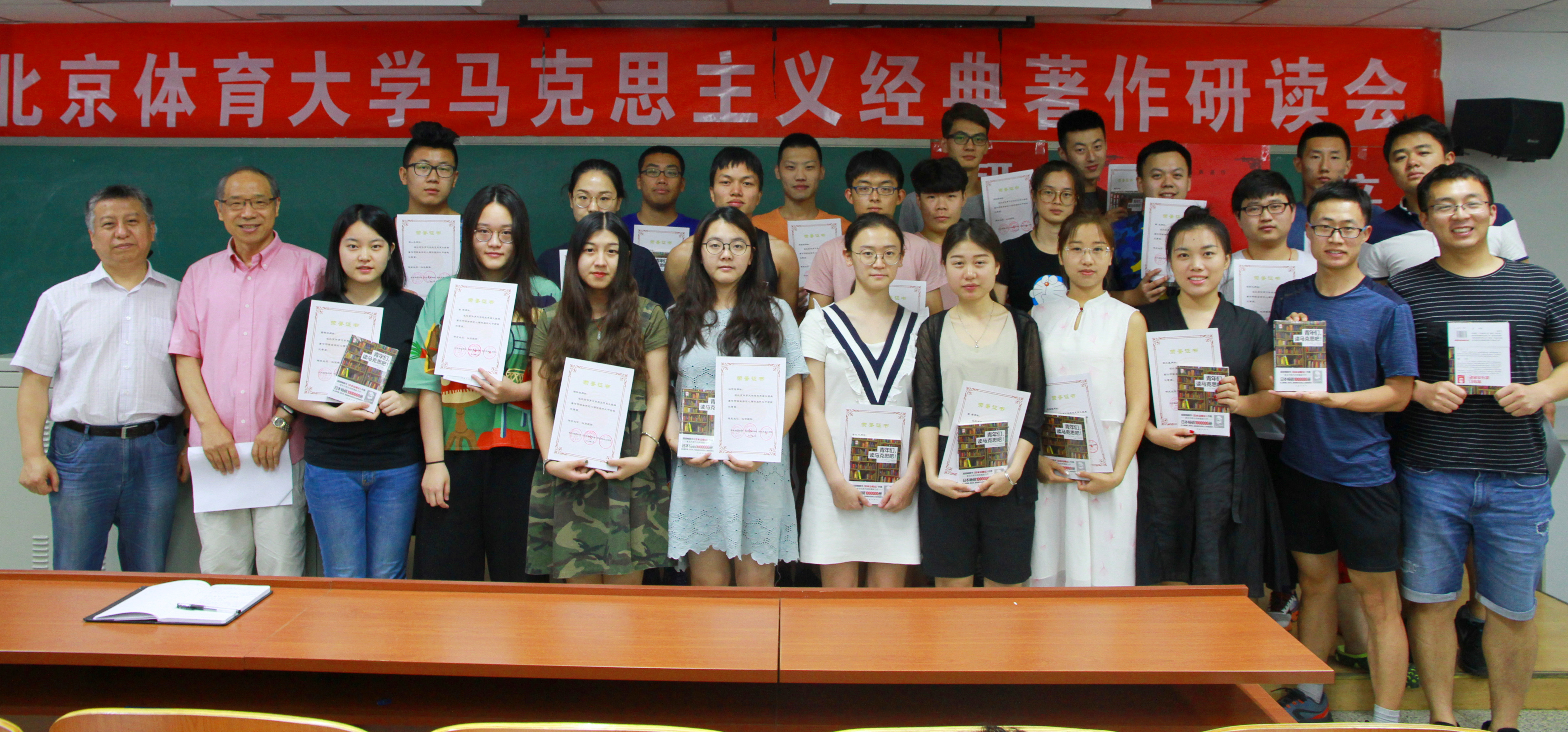 研读会合影 颁奖仪式开始前,李庚全首先开展马克思与恩格斯生平事迹小讲座,为大家讲述两位革命导师如何从有志青年成长为共产主义革命先驱者的故事。李庚全生动的语言让在场的同学们听得津津有味。通过李庚全的讲述,大家对马恩两位伟大的思想家、革命家的生平有了进一步的了解。 随后,颁奖仪式开始,张亚宁代表三个部门宣读本次研读会获奖者名单,对获奖学生表示诚挚祝贺,鼓励同学们继续发奋读书,研读经典,提升自身思想境界。本次研读会评出一等奖8名、二等奖13名、三等奖15名、优秀奖37名,共73名学生获奖。 马克思主义学院党总支组织委员李红霞对本次经典研读会进行了总结。她首先代表举办本次研读会的三个部门向获奖的同学表示祝贺,向组织本次活动的工作人员表示感谢。她提出两点希望:一是希望大家以本次研读会为契机,养成良好的阅读习惯,深入阅读经典著作;二是希望其他院系多举办新颖有趣的阅读活动,增强学生的理论水平。 最后,张亚宁、李庚全等领导和老师们给全体获奖学生颁发了证书和奖品。 目前,经典著作研读活动正在向纵深延伸,大家在马克思主义理论的海洋里遨游,为的是在深邃的理论空间里探寻科学的真理。