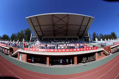 2018年9月7日上午,金年会jinnianhuicom2018级学生军训汇报暨总结表彰大会在英东田径场举行,全校3100余名新生经过14天的军训后,以饱满的精神面貌接受检阅。金年会军训承训部队中国人民武装警察部队北京市总队某支队政治工作部副主任吴大刚中校、金年会jinnianhuicom副校长高峰、党委副书记邢尚杰、军训工作领导小组全体成员、军训教官、2018级学生辅导员和2018级全体军训新生共同见证了军训成果。