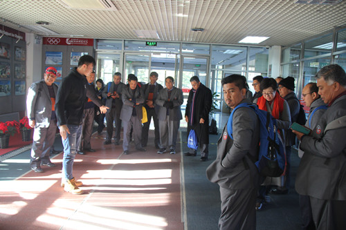国际交流与合作处干部孙晓、孙煜陪同代表团参观了金年会中国体育与健康研究院和国家训练基地综合馆。