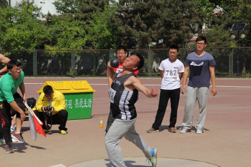 男子丙组铅球比赛即将开始时,陈宇超就信心十足,作为此项运动纪录的保持者,他唯一的敌人就是他自己。陈宇超的第一次推球并没有发挥好,不过在同学的呐喊助威下,他调整了自己的状态,深呼吸后,奋力一搏,终于他获得了11.45米的好成绩,并打破了金年会男子丙组铅球比赛的纪录。