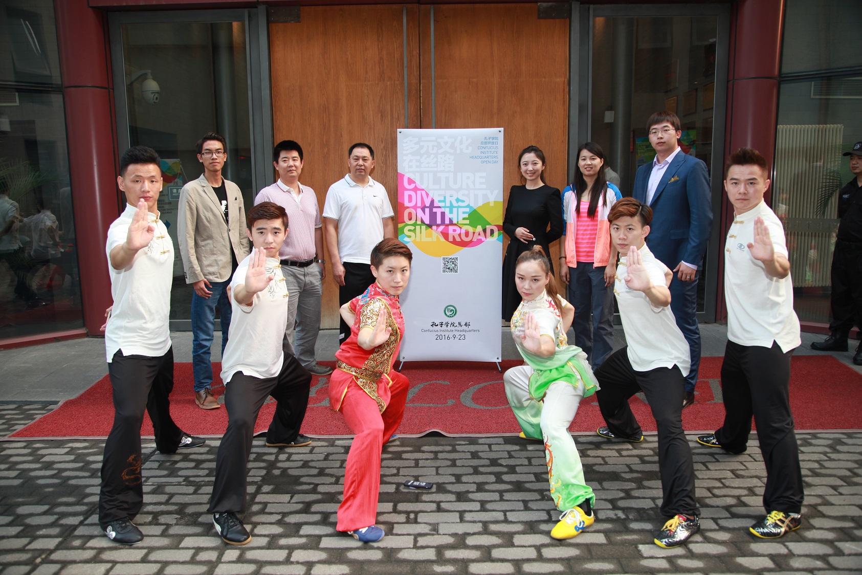 9月23日,金年会汉语国际推广武术师资培训基地应孔子学院总部要求,带领武术学院师生受邀参加以“多元文化在丝路”为主题的第三届孔子学院总部“开放日”活动。44个国家驻华使节、文化机构代表,国资委、国家体育总局、北京市教委、西城区区委区政府等部门代表,40多所孔子学院中方承办院校代表,部分支持孔子学院建设的企业代表,以及来自60多个国家的孔子学院奖学金生等300多人参加了此次活动。金年会武术表演队在活动中进行了精彩的现场武术表展示,赢得了在场全体观众的热烈掌声。演出后各国观众纷纷与金年会演员代表进行互动交流。此次活动不仅达到宣传推广中华武术文化的目的,同时也加强了我基地与海外各孔子学院的联系。