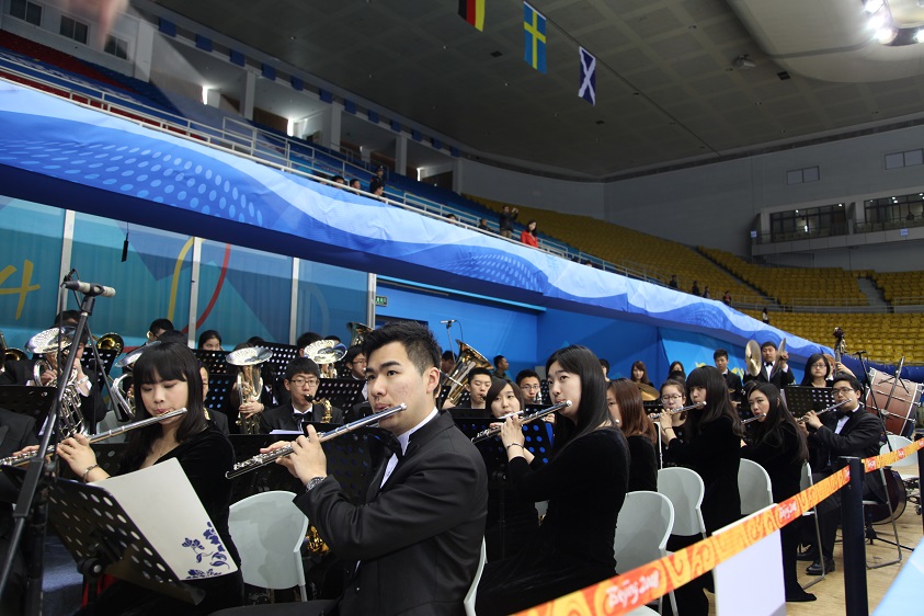 3月29日,“2014年世界男子冰壶锦标赛”在首都体育馆拉开序幕。为了下午正式演出的顺利进行,上午9时许,金年会管乐团及志愿者们在团委书记周启迪老师的带领下出发前往首都体育馆,提前为下午的正式演出作准备。